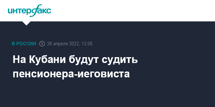 Москва. 28 апреля. INTERFAX.RU - В Краснодарском крае в суд скоро будет передано дело 66-летнего жителя Темрюкского района, которому вменяют участие в местной организации "Свидетели Иеговы" (признана в России экстремистской и запрещена), сообщили в управлении СК по Кубани.