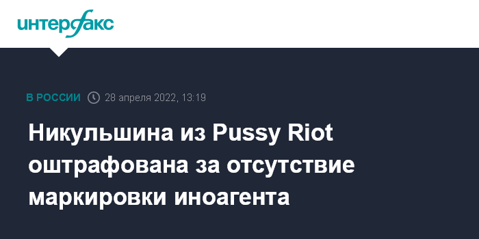 Никульшина из Pussy Riot оштрафована за отсутствие маркировки иноагента