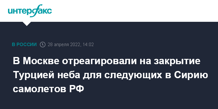 23 апреля глава турецкого МИД Мевлют Чавушоглу сообщил, что Турция закрывает воздушное пространство для российских гражданских и военных самолетов, которые направляются в Сирию.