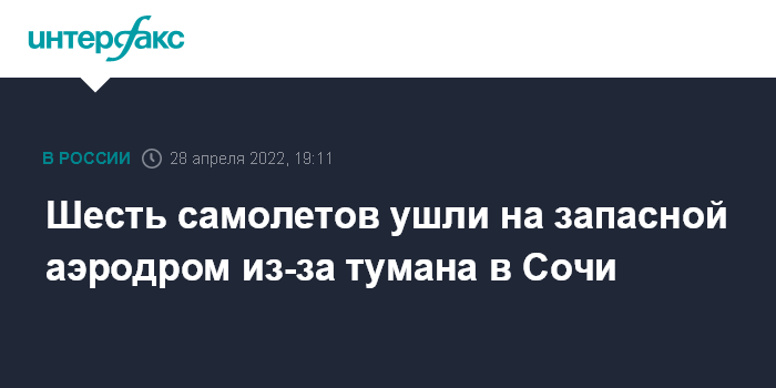 Москва. 28 апреля. INTERFAX.RU - Туман над Сочи заставил экипажи шести самолетов принять решение уйти на запасной аэродром в Минеральные Воды, сообщает пресс-служба аэропорта Сочи в четверг.