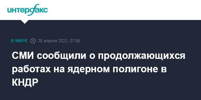 Москва. 29 апреля. INTERFAX.RU - Северная Корея продолжает работы по восстановлению ядерного испытательного полигона Пунгери, сообщает сайт 38 North, специализирующийся на КНДР.
