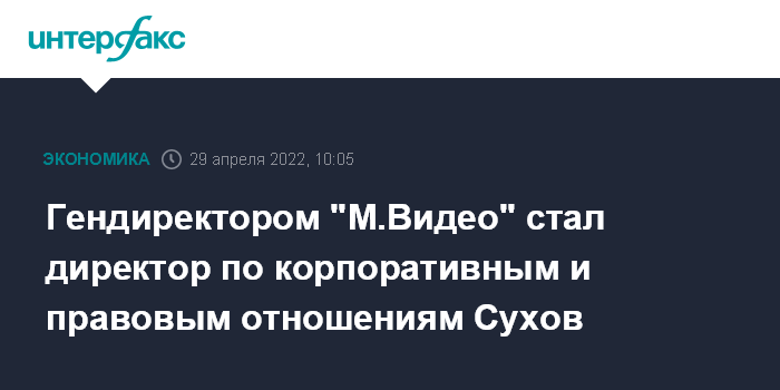 Гендиректором "М.Видео" стал директор по корпоративным и правовым отношениям Сухов