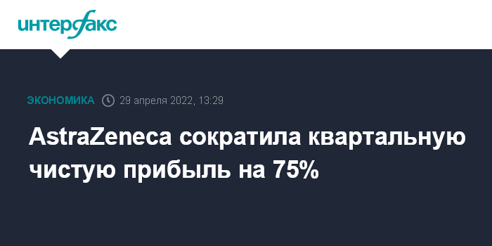 Москва. 29 апреля. INTERFAX.RU - В I квартале 2022 года AstraZeneca, производитель вакцины от коронавируса, сократила чистую прибыль на 75%, несмотря на рост выручки более чем в 1,5 раза.