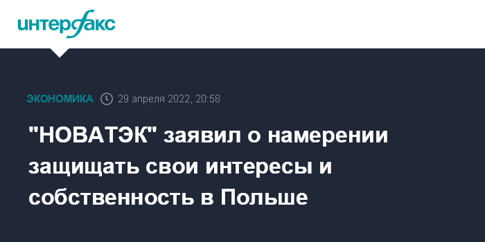 "НОВАТЭК" заявил о намерении защищать свои интересы и собственность в Польше