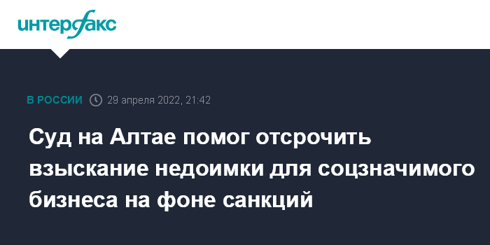Суд на Алтае помог отсрочить взыскание недоимки для соцзначимого бизнеса на фоне санкций