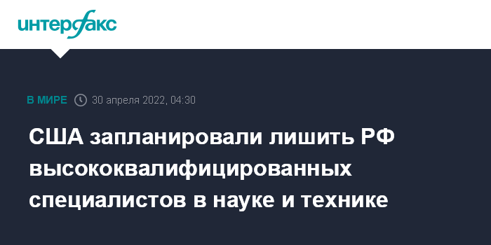 США запланировали лишить РФ высококвалифицированных специалистов в науке и технике
