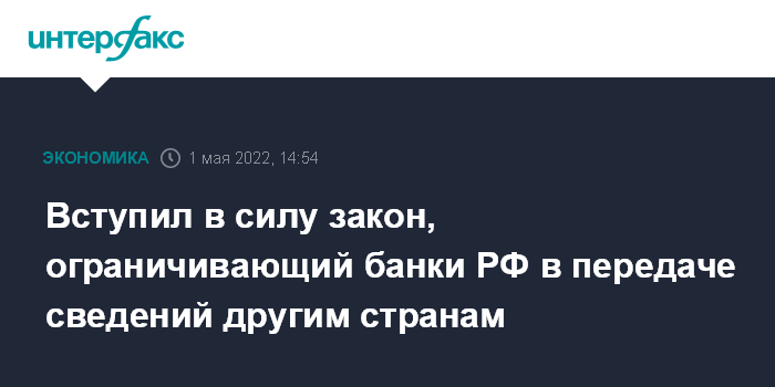 Вступил в силу закон, ограничивающий банки РФ в передаче сведений другим странам