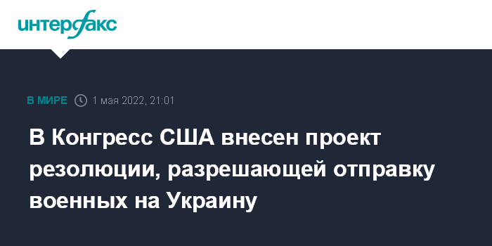 "Я не считаю, что сейчас нам нужно отправлять войска на Украину. Я лишь внес на рассмотрение документ, разрешающий применение вооруженных сил. Это даст президенту данную опцию в случае, если на Украине применят ядерное, химическое или биологическое оружие", - пояснил конгрессмен.