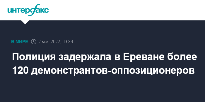 Москва. 2 мая. INTERFAX.RU - Полиция Армении утром в понедельник задержала 125 демонстрантов, перекрывающих улицы в центре Еревана в рамках объявленных оппозиций акций гражданского неповиновения.