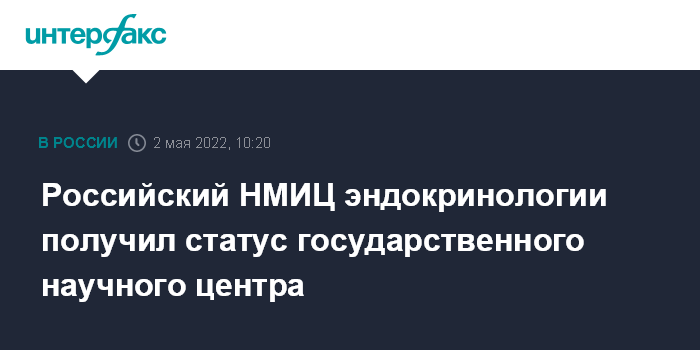 Российский НМИЦ эндокринологии получил статус государственного научного центра