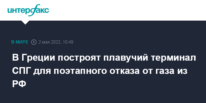 "Плавучий терминал СПГ в Александруполисе поможет достичь цели ЕС по поэтапному отказу от российского газа как можно скорее, как было решено Европейским советом в марте", - объяснил пресс-секретарь.