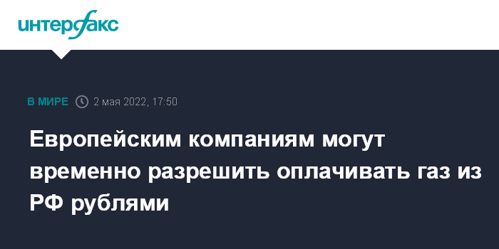 Москва. 2 мая. INTERFAX.RU - Европейским энергетическим компаниям необходимо позволить оплачивать поставки российского газа в рублях, считает министр по делам энергетической безопасности Италии Роберто Чинголани.