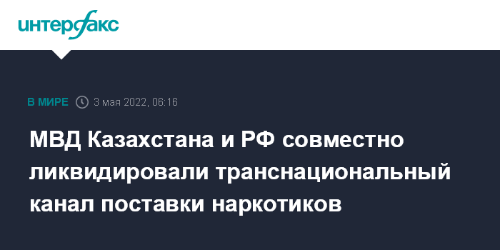 Москва. 3 мая. INTERFAX.RU - Подразделениями по противодействию наркопреступности МВД Казахстана и России проведена спецоперация на территории двух стран по перекрытию транснационального канала поставки синтетических наркотиков, сообщила пресс-служба МВД Казахстана во вторник.