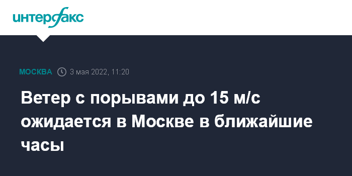 Ветер с порывами до 15 м/с ожидается в Москве в ближайшие часы