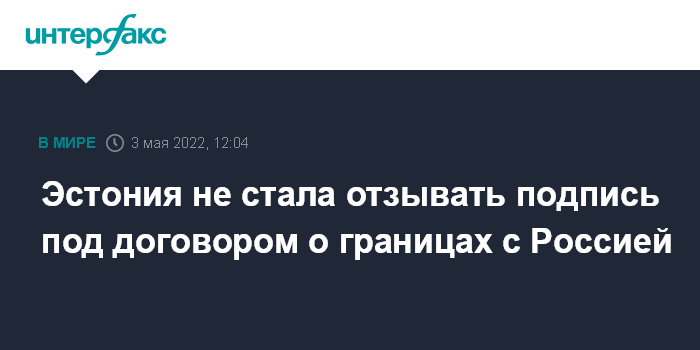 Москва. 3 мая. INTERFAX.RU - Парламент Эстонии на заседании во вторник не поддержал предложение отозвать подпись под пограничным договором с Российской Федерацией.