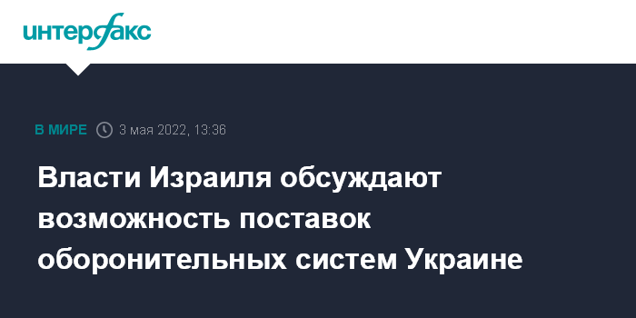 Москва. 3 мая. INTERFAX.RU - Израильские власти ведут дискуссии о возможном увеличении поставок помощи Украине, включив в нее в том числе оборонительные системы, сообщает во вторник газета "Гаарец".