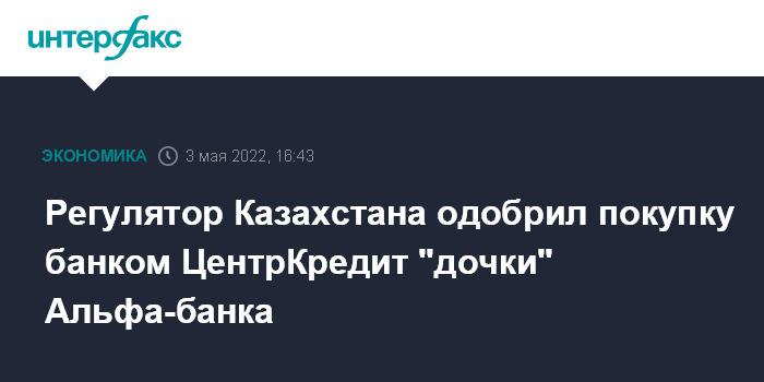 Регулятор Казахстана одобрил покупку банком ЦентрКредит "дочки" Альфа-банка