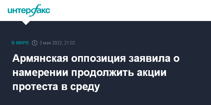 Армянская оппозиция заявила о намерении продолжить акции протеста в среду