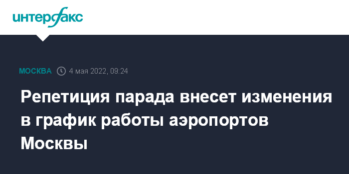 Москва. 4 мая. INTERFAX.RU - Из-за репетиций воздушной части парада Победы аэропорты Московской воздушной зоны в начале мая несколько дней будут работать с ограничениями, предупредила Росавиация.