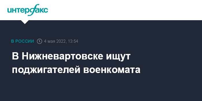 Москва. 4 мая. INTERFAX.RU - В Нижневартовске полицейские ищут двух человек, которые попытались поджечь здание военкомата в ночь на 4 мая.
