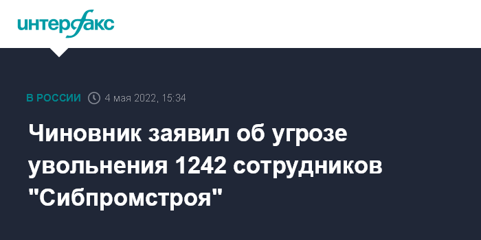 Чиновник заявил об угрозе увольнения 1242 сотрудников "Сибпромстроя"
