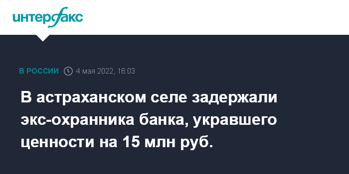 В астраханском селе задержали экс-охранника банка, укравшего ценности на 15 млн руб.