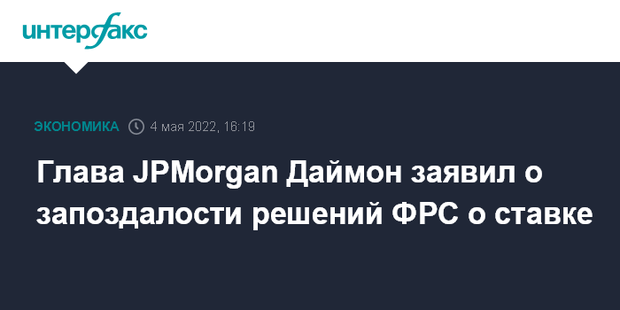Глава JPMorgan Даймон заявил о запоздалости решений ФРС о ставке