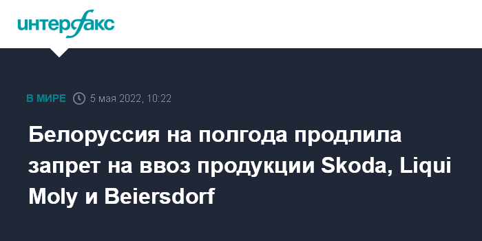 Белоруссия на полгода продлила запрет на ввоз продукции Skoda, Liqui Moly и Beiersdorf