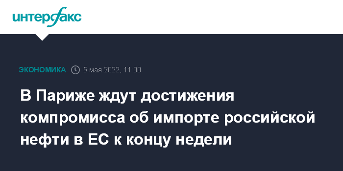 В Париже ждут достижения компромисса об импорте российской нефти в ЕС к концу недели