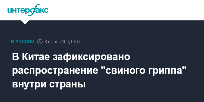 В Китае зафиксировано распространение "свиного гриппа" внутри страны