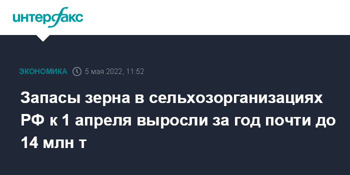 Запасы зерна в сельхозорганизациях РФ к 1 апреля выросли за год почти до 14 млн т