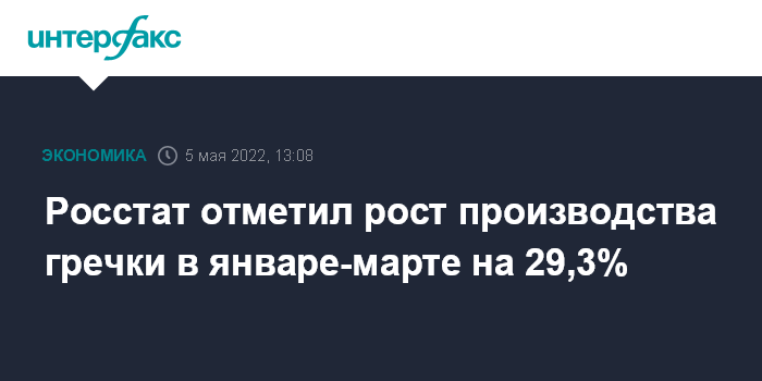 Москва. 5 мая. INTERFAX.RU - В первом квартале 2021 года российские крупяные предприятия произвели 131,1 тысячи тонн гречневой крупы, что на 29,3% больше, чем за аналогичный период прошлого года, сообщил Росстат.