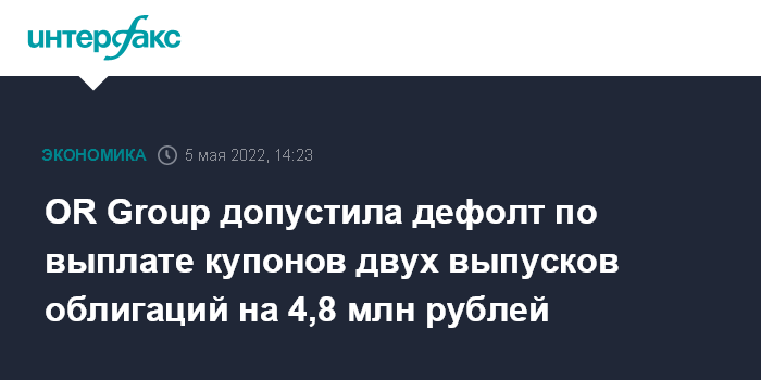 OR Group допустила дефолт по выплате купонов двух выпусков облигаций на 4,8 млн рублей