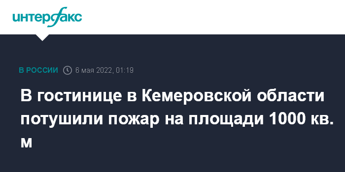 Ранее в четверг пресс-служба МЧС РФ сообщила о возгорании кровли в здании частной гостиницы в селе Красный Яр Кемеровской области на площади 1000 кв. м. В 23:48 мск пожар был локализован.