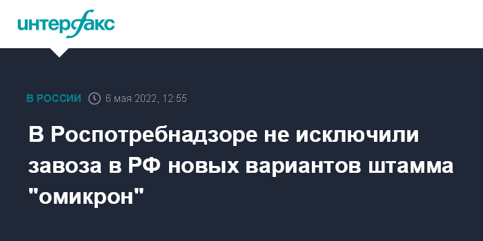 "Варианты BA.4 и BA.5 уже широко распространены в Южной Африке, и специалисты называют их причиной нового подъема заболеваемости в регионе. В России эти варианты "омикрона" пока не выявлялись, а доминирующей остается линия BA.2, включая ее дочерние сублинии. Но нужно отметить, что риск завоза существует всегда, как это было и с предыдущими штаммами", - сказал Хафизов.