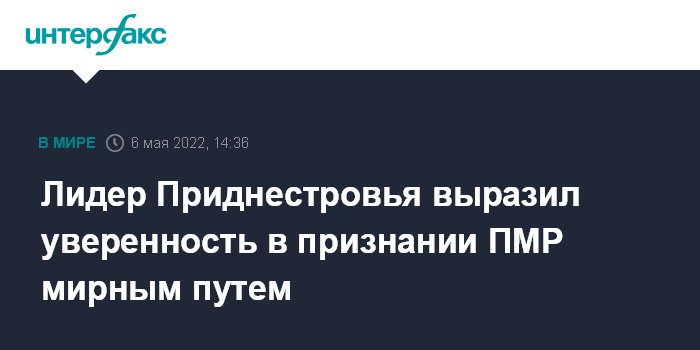 Лидер Приднестровья выразил уверенность в признании ПМР мирным путем
