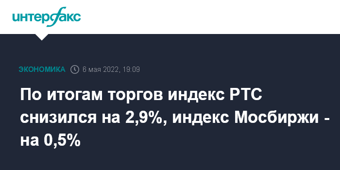 По итогам торгов индекс РТС снизился на 2,9%, индекс Мосбиржи - на 0,5%