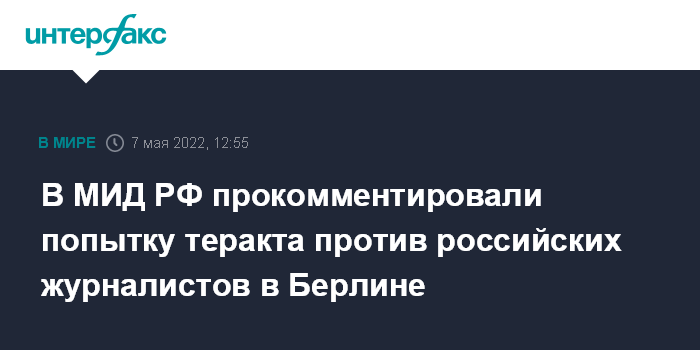 В МИД РФ прокомментировали попытку теракта против российских журналистов в Берлине