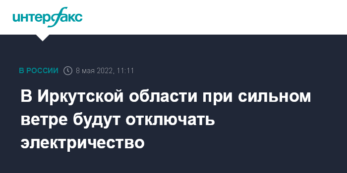 Москва. 8 мая. INTERFAX.RU - Отключать энергоснабжение в поселках в случае сильного ветра будут в Иркутской области, сообщил в воскресенье в своем телеграм-канале губернатор региона Игорь Кобзев.