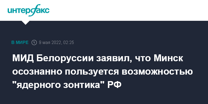 МИД Белоруссии заявил, что Минск осознанно пользуется возможностью "ядерного зонтика" РФ