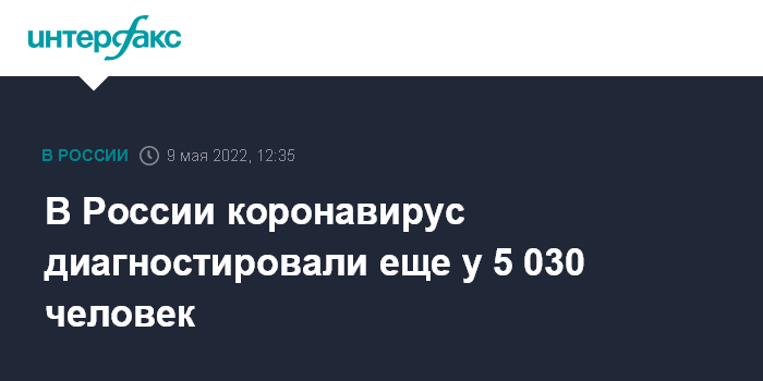 Москва. 9 мая. INTERFAX.RU - Суточный прирост новых заболевших коронавирусной инфекцией в РФ составил 5 030 случаев, следует из данных оперативного штаба, обнародованных в понедельник.