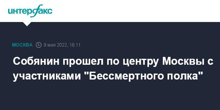 Москва. 9 мая. INTERFAX.RU - Мэр Москвы Сергей Собянин принял участие в акции "Бессмертный полк" на Тверской улице в центре столицы, неся портрет своего дяди, рядового стрелка Филиппа Собянина, прошедшего Великую Отечественную войну.