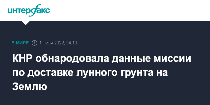 "10 мая 2022 года система научных исследований и их применения Лунной программы КНР опубликовала научные данные "Чанъэ-5", - говорится в сообщении на сайте программы.