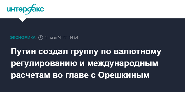 Москва. 11 мая. INTERFAX.RU - Президент РФ Владимир Путин поручил образовать межведомственную рабочую группу по выработке новых механизмов в сфере валютного регулирования и международных расчетов.