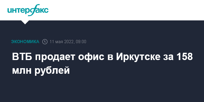 ВТБ продает офис в Иркутске за 158 млн рублей