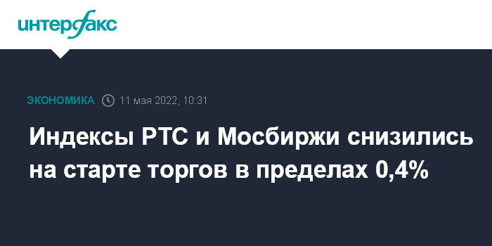 Индексы РТС и Мосбиржи снизились на старте торгов в пределах 0,4%