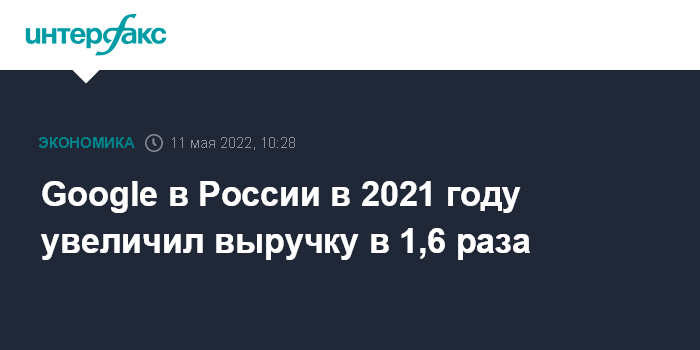 Google в России в 2021 году увеличил выручку в 1,6 раза