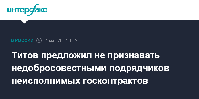 Титов предложил не признавать недобросовестными подрядчиков неисполнимых госконтрактов