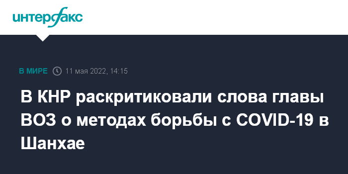 Москва. 11 мая. INTERFAX.RU - В Китае сочли безответственным комментарий главы Всемирной организации здравоохранения (ВОЗ) Тедроса Адханома Гебрейесуса, который призвал применить в Шанхае иной подход к борьбе с COVID-19 нежели локдаун, сообщает в среду агентство Associated Press.
