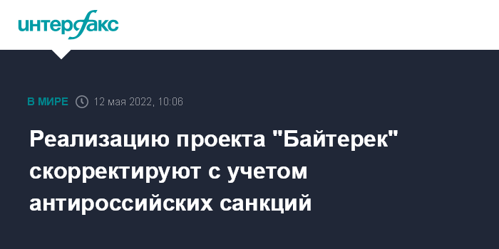 "По причине вводимых санкций в отношении России и их влияния на дальнейшую реализацию проекта "Байтерек" в целях выработки необходимых мер по смягчению их последствий сторонами ведутся переговоры по условиям дальнейшей реализации проекта", - сказал собеседник агентства в четверг.